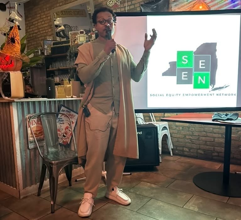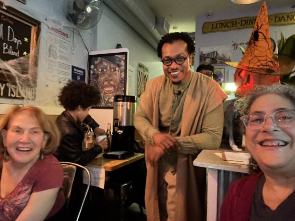 Second, we went to a fundraising celebration for Seen NY, the Social Equity Empowerment Network of New York, working for justice in the cannabis industry. SEEN’s director, Tavian Crossland, was a Project Champion in SLU’s course, Cooperative Management for a Changing World. Here he is with Rebecca Lurie and Deb Olson, a cooperative lawyer. Deb and Rebecca are active on the board of Co-op Rhody, a cannabis justice initiative in Rhode Island.